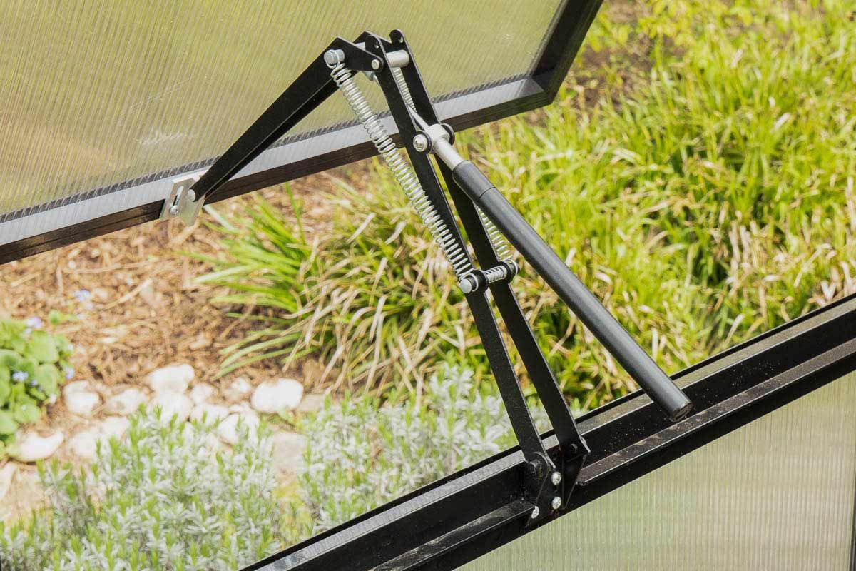 Dieses Gewächshaus ist ein absoluter Klassiker und optisch ein toller Blickfang in Ihrem Garten. Das Modell ist in zwei verschiedenen Größen und in zwei Verglasungsartungen erhältlich (Kunststoffglas Hohlkammerprofilen 6 mm oder Echtglas 4 mm). Diese Verglasungen schützen die Pflanzen gegen zu starke Sonneneinstrahlung, sorgen für eine ausgeglichene Temperatur und sind weniger empfindlich gegen herabfallende Äste oder dergleichen. Die Oberfläche des Gewächshauses glänzt in der Sonne und Obst und Gemüse reifen im intensiven Tageslicht. Dieses Gewächshaus ist mit Kippfenstern ausgestattet, eines davon öffnet sich automatisch bei zu hoher Temperatur und schließt sich nach der Abkühlung. Eine leicht zu reinigende und dadurch stets saubere Oberfläche erlaubt eine maximale Lichtausbeute. Verlängern auch Sie Ihre Obst und Gemüse Saison.