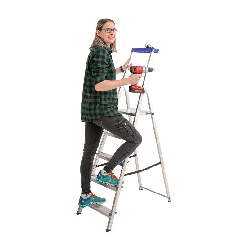 Haushaltsleiter Alu mit Sicherheitsbügel und Ablageschale Mod. KHA