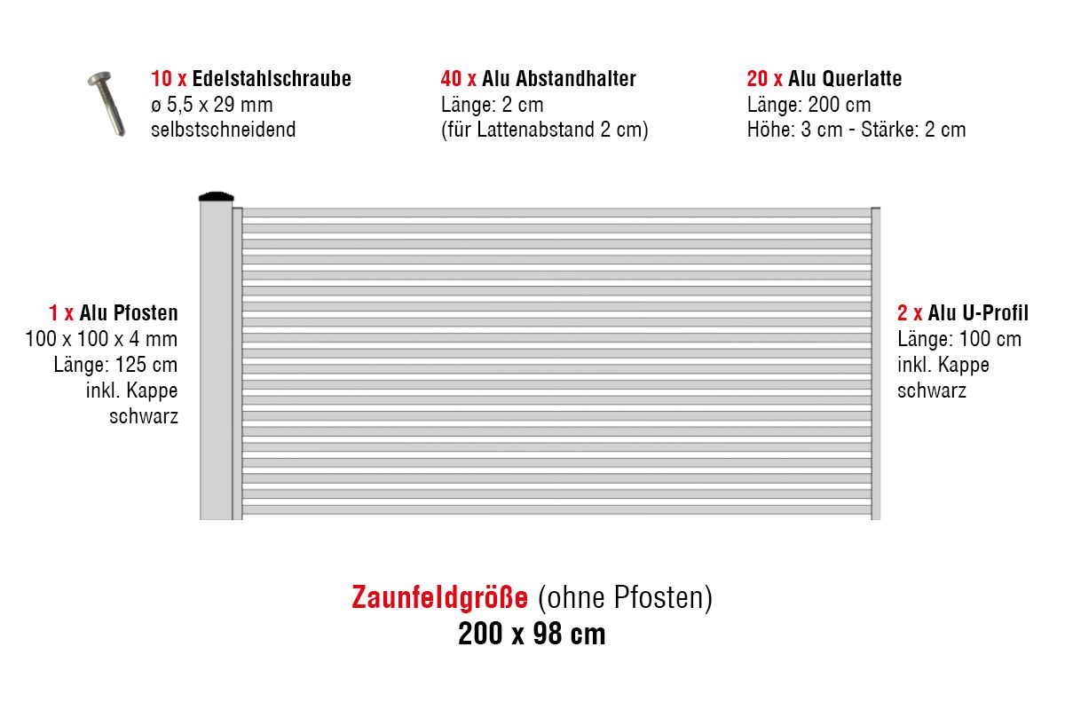 Aluzaun Cardiff Zaunfeld-Set - Höhe: 98 cm, Breite: 200 cm, Farbe: grau